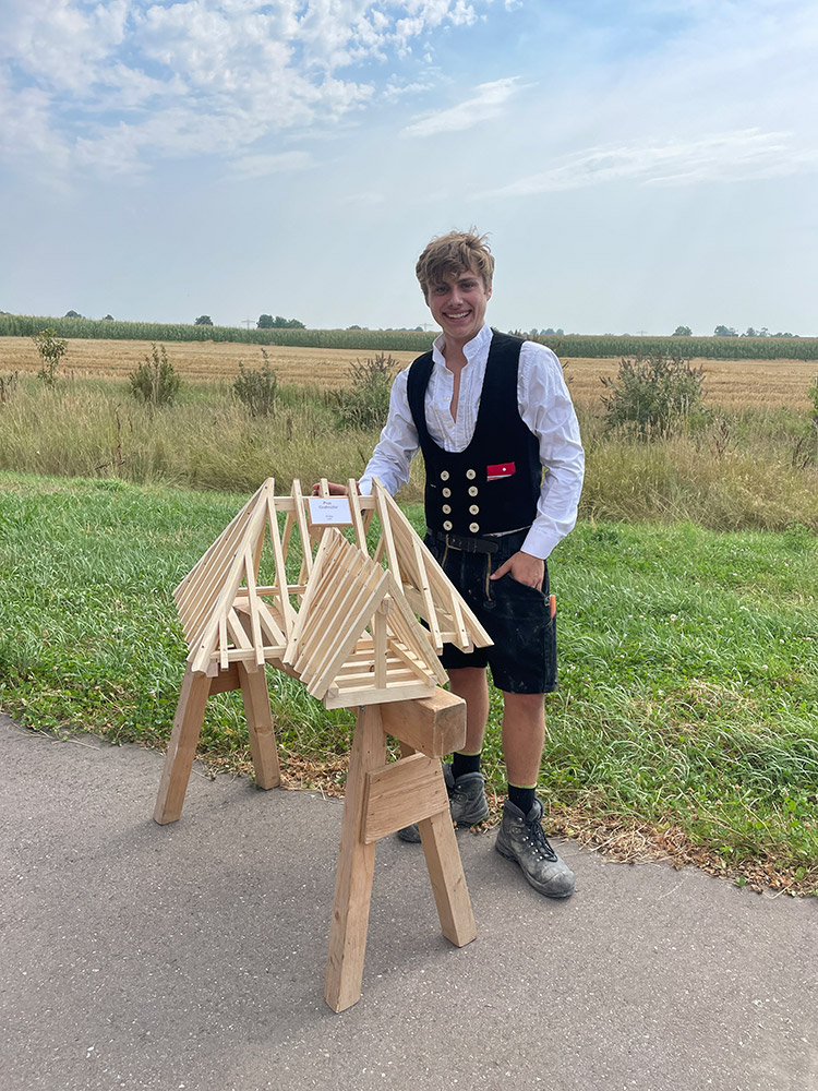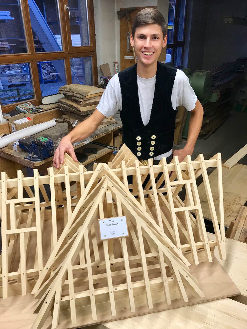 Er gehört zu den besten Zimmerern seines Jahrgangs und darf am Leistungswettbewerb für die Zimmerer Innung Lahr mit antreten.