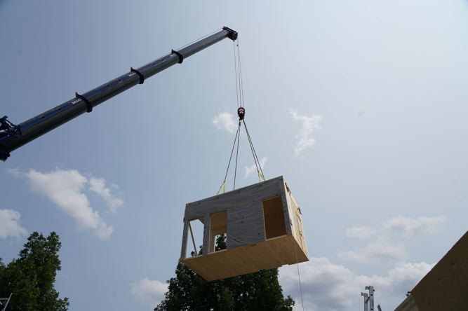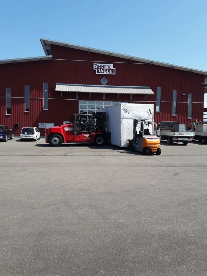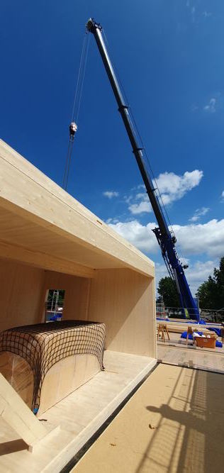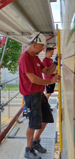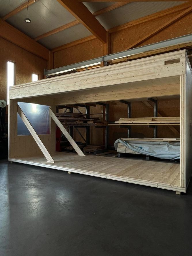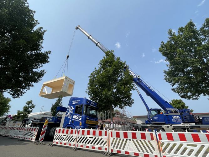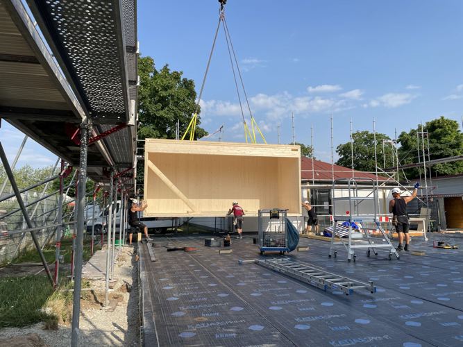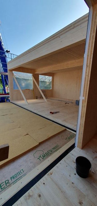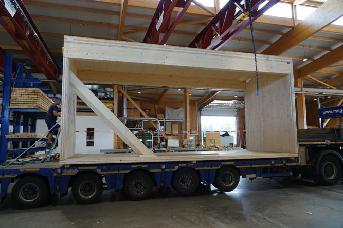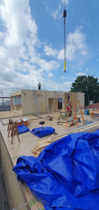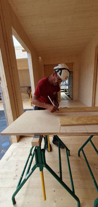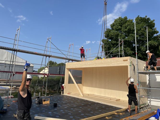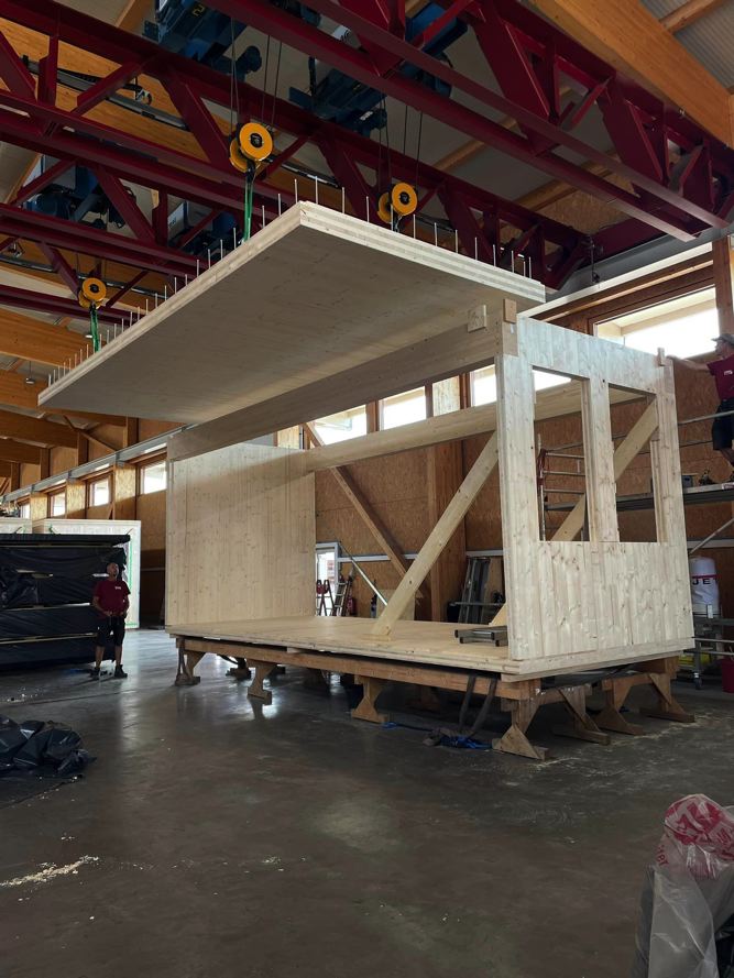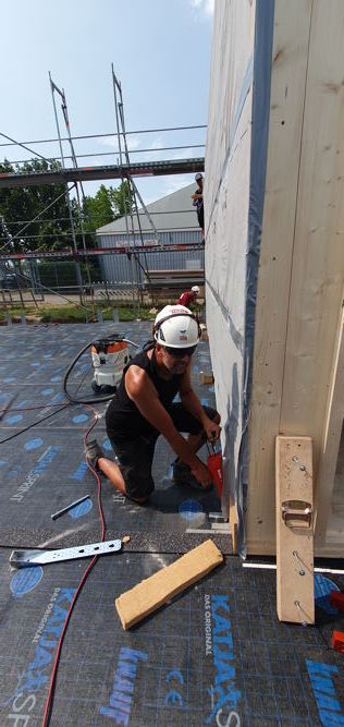 Tätigkeit: Hier wurden 26 Holzmodule in unserer Fertigungshalle montiert. Diese wurden dann in Lahr für sechs vorübergehende Klassenzimmer montiert.